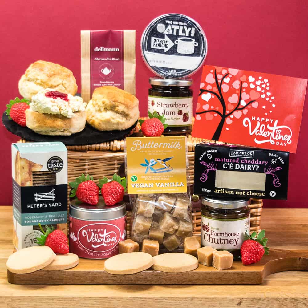 The Vegan Valentine’s Afternoon Tea With Vegan Cheese & Chutney gift hamper is one of our most popular vegan gifts.